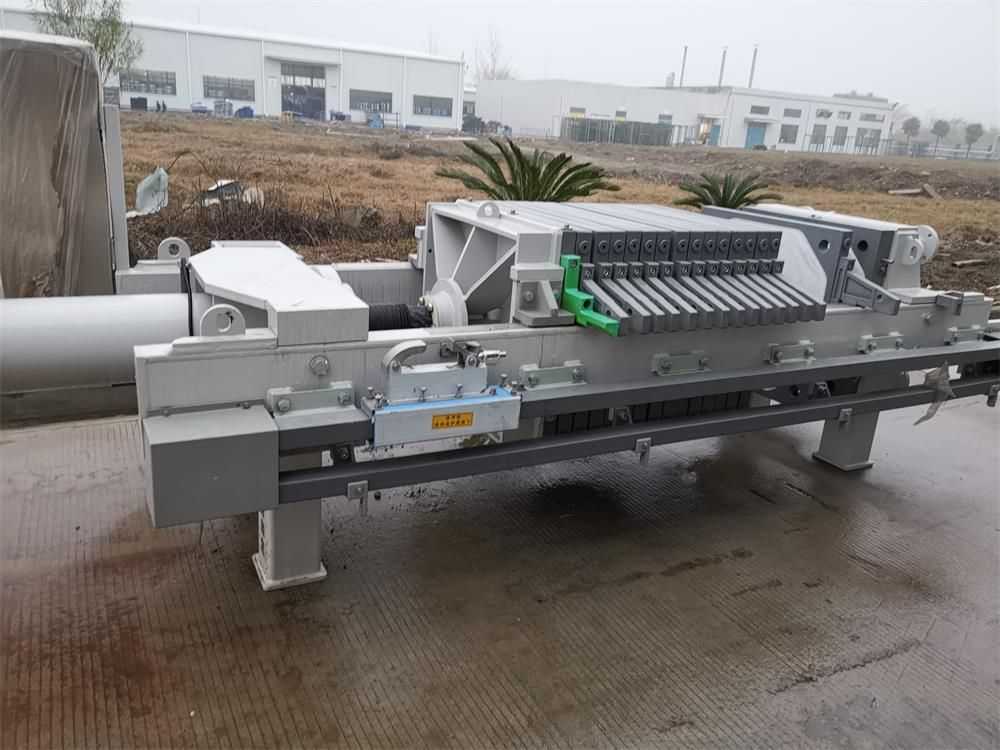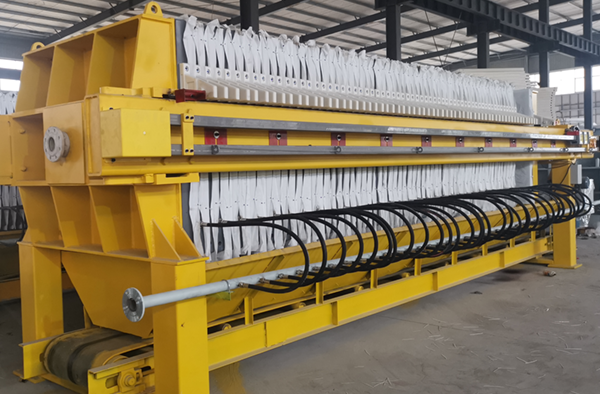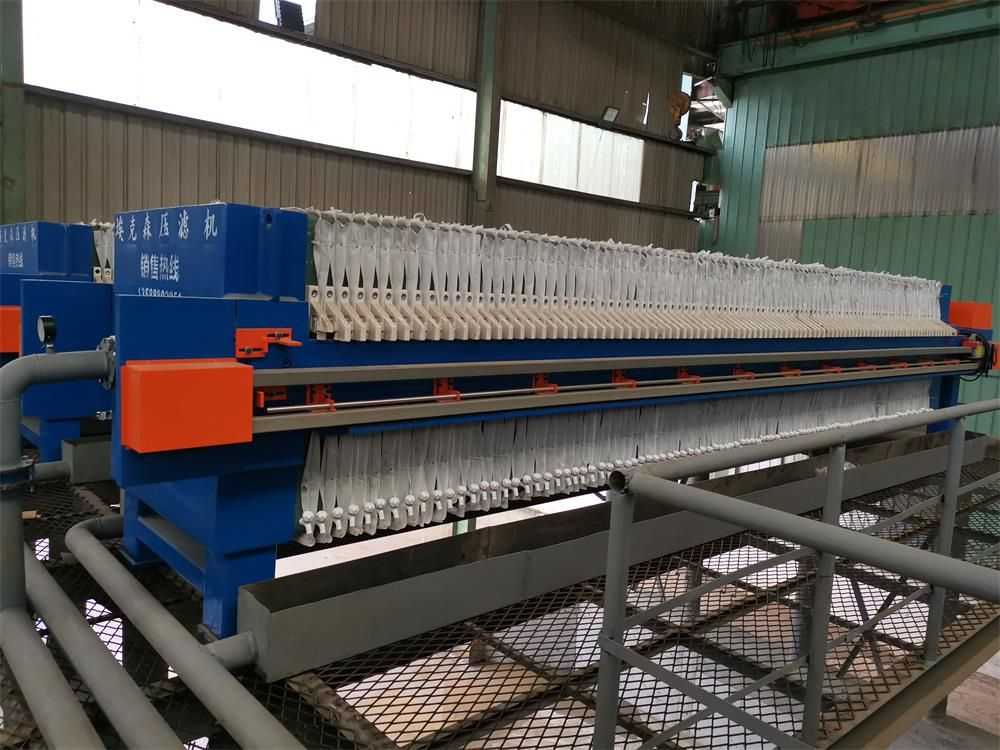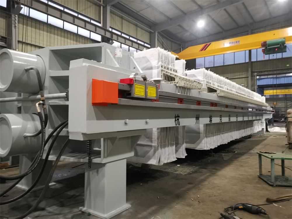 隔膜壓濾機(jī)和常規(guī)箱式壓濾機(jī)的主要區(qū)別在于,在濾板的兩側(cè)都增加了兩個(gè)彈性膜(復(fù)合橡膠膜是一個(gè)整體式膜。在操作期間,當(dāng)進(jìn)料完成時(shí),將高壓流體介質(zhì)注入膜中,并使整個(gè)膜膨脹以過(guò)濾濾餅,以進(jìn)一步使濾餅脫水,這是壓力過(guò)濾。在隔膜壓濾機(jī)運(yùn)行期間,液壓系統(tǒng)使用液壓油作為壓力載體來(lái)傳遞內(nèi)部壓力。
